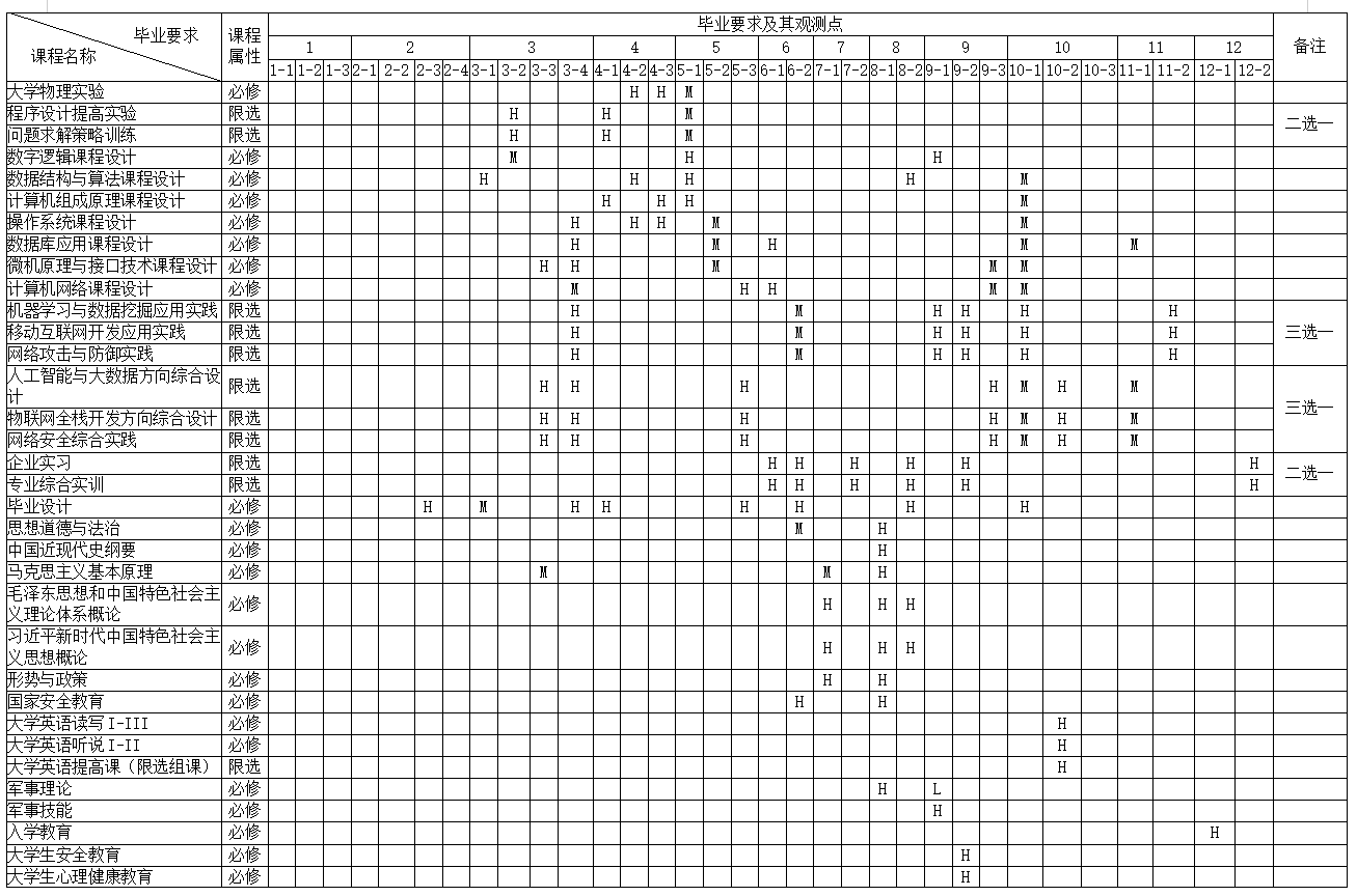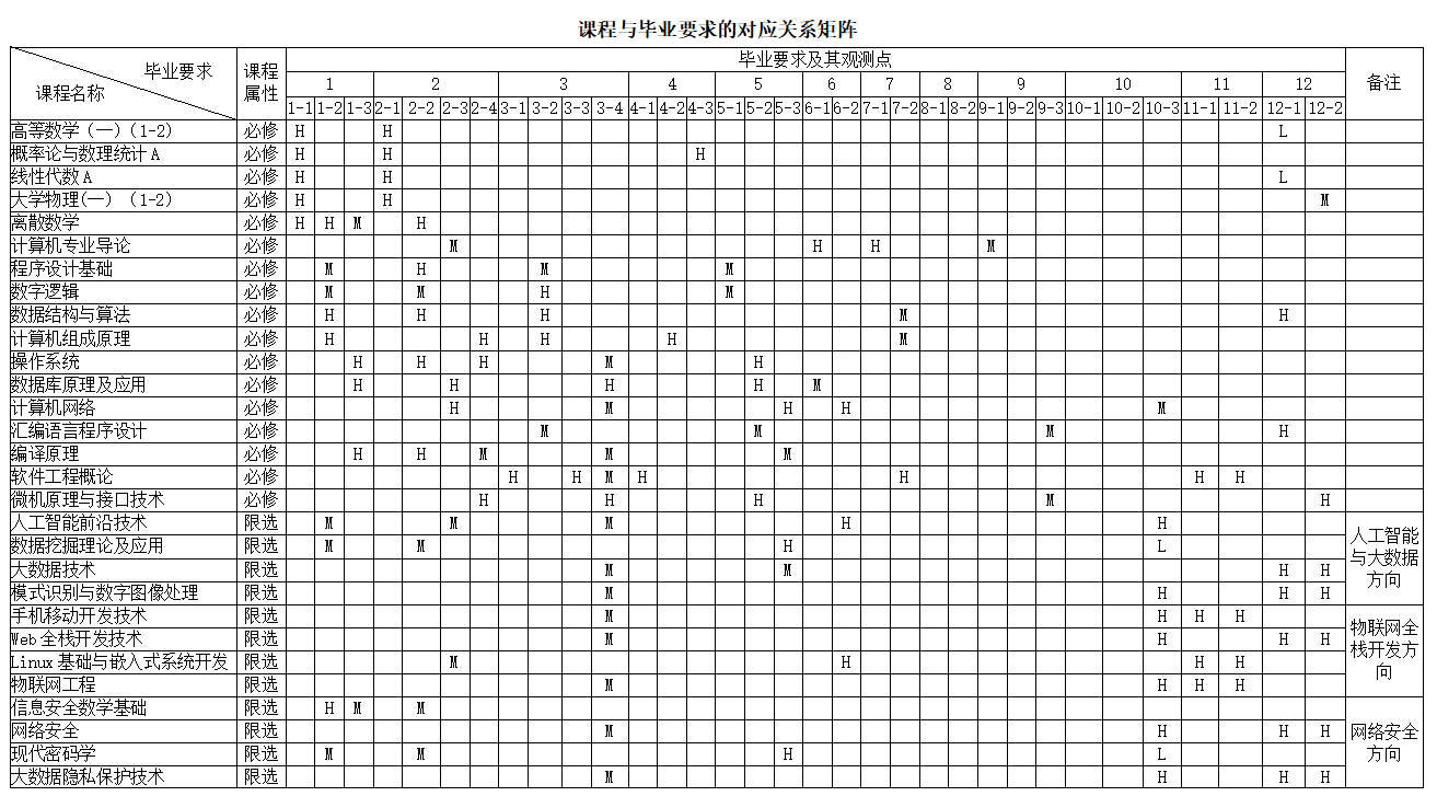 根据课程对各项毕业要求的支撑强度分别用“H(高)、M(中)、L(弱)”表示。