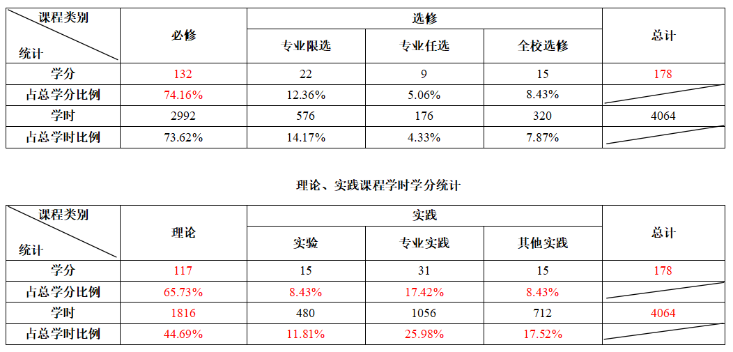 学制4年,修满178学分方能毕业。其中通识教育55学分,专业教育88.5学分,实践教育34.5学分。