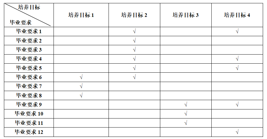 毕业要求支撑培养目标矩阵表