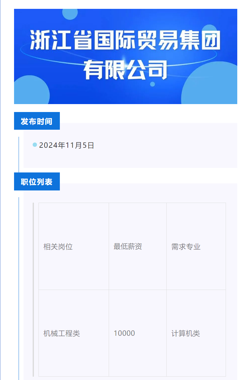 点击文字跳转至浙江省国际贸易集团有限公司招聘公告