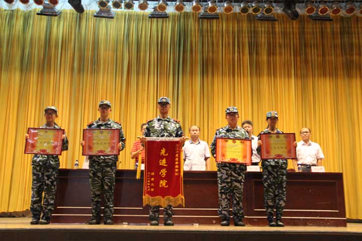 2015级新生军训先进个人的决定》。院领导为荣获“2015级学生军训先进学院”、