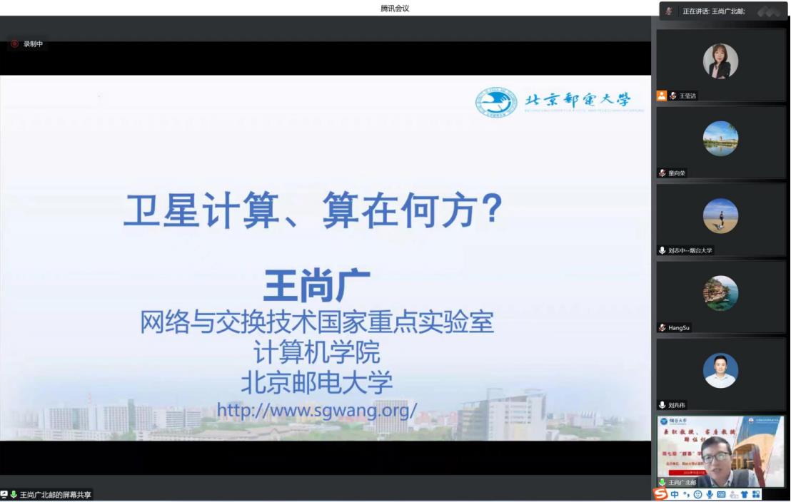王尚广作了题为“卫星计算、算在何方?”的学术报告,刘志中副教授主持。王尚广教授在报告中回顾了国内外卫星互联网发展现状,就卫星计算面临的“网网不同、星星并存、算算失衡”等关键挑战展开了分析,最后通过天算星座建设情况探讨了对卫星计算研究的未来方向,为从事卫星计算方向的科研人员打开了新的窗口。