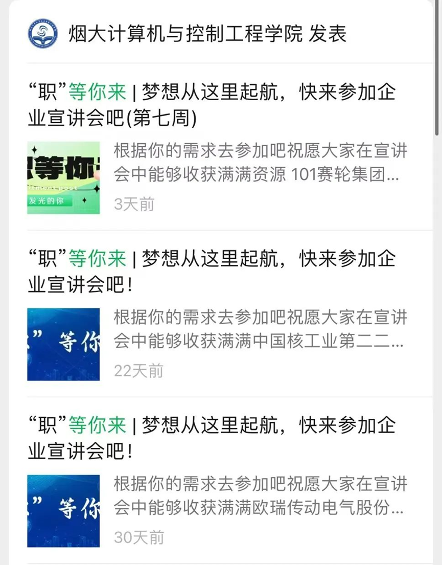 线下方面,各班级设立就业信息员,积极带领班级有就业意向同学参加线下宣讲会与就业指导会,并通过点对点方式将企业信息推荐给相应学生。截至目前,已通过就业工作群和微信公众号发布招聘信息150余条,各类就业信息浏览量达1600余人次。