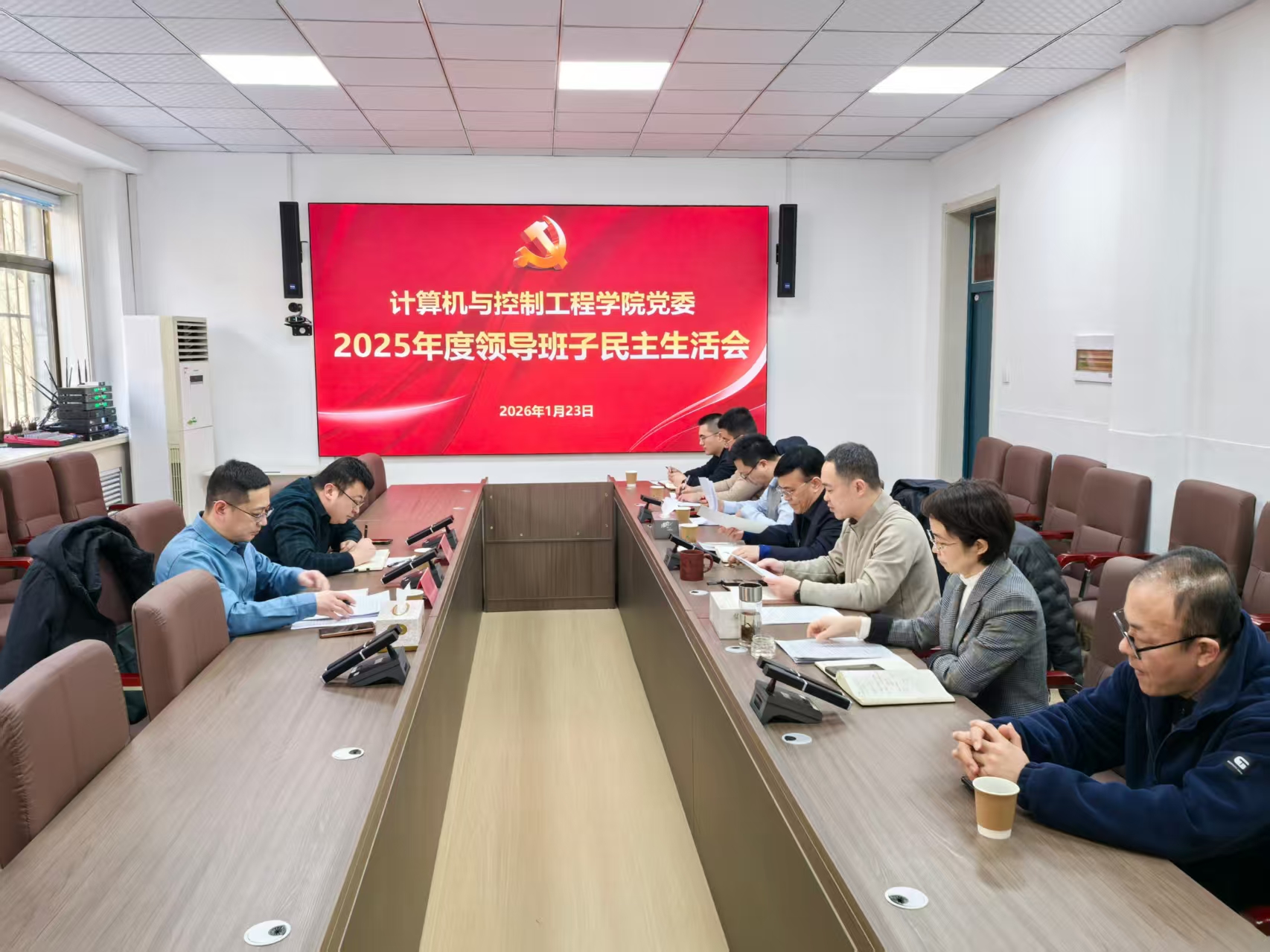 党委在科技馆召开2025年度领导班子民主生活会。学校督导组刘超、庞磊到会指导,学院全体领导班子成员参加,党委书记段昕主持。
