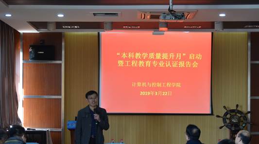 为贯彻落实“以本为本”,推进“四个回归”,全面提高人才培养能力,提升教学质量,促进学院内涵建设,3月22日上午,学院在科技馆6205召开全院会议,启动 “本科教学质量提升月”活动,并邀请哈尔滨工程大学计算机学院院长印桂生教授做《把握认证内涵,提高培养质量》报告,每日大赛 教务处处长毕可志教授出席会议并讲话。