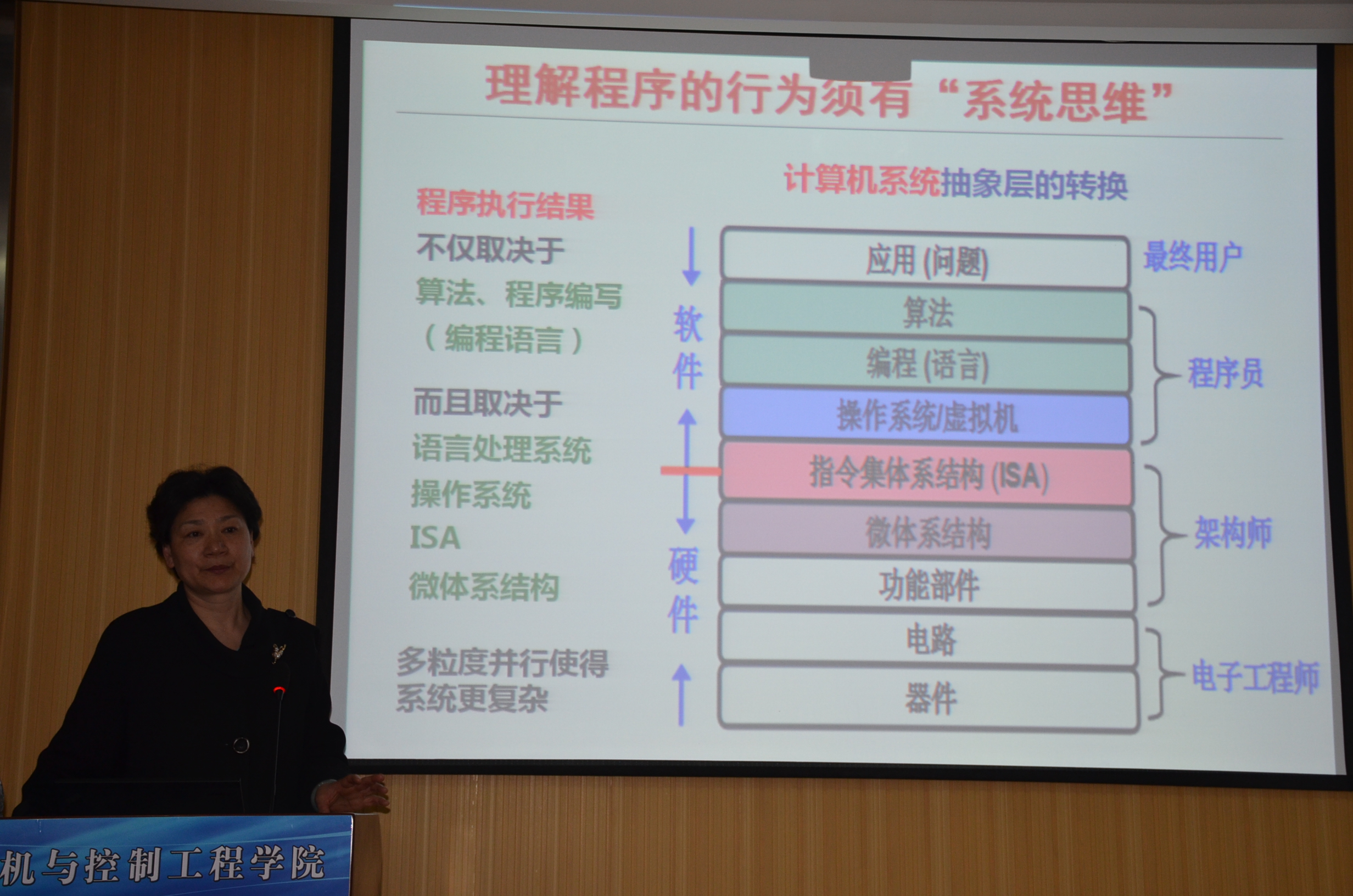 做“计算机系统能力培养研究与实践”报告,报告会由副院长童向荣教授主持,学院全体教师参加报告会。