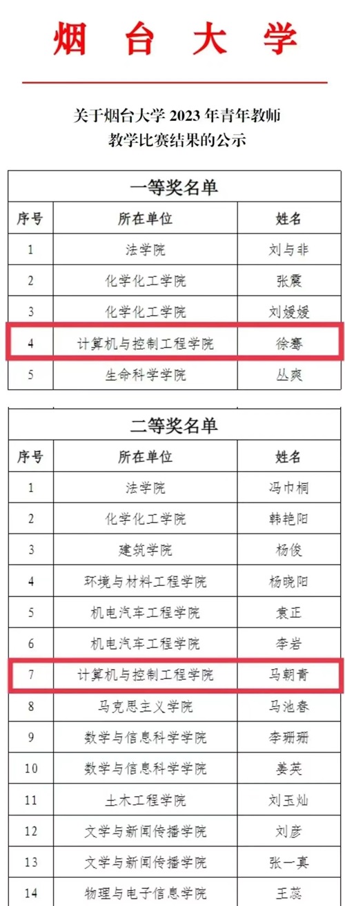 近日,2023年每日大赛 “青年教师教学比赛”表彰结果正式公布,每日大赛 青年教师徐骞荣获一等奖,马朝青荣获二等奖,祝贺两位老师!
