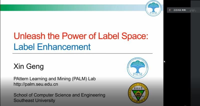 东南大学计算机科学与工程学院、软件学院院长,人工智能学院执行院长,国际工程与技术学会(IETI)杰出会士,国家基金委优青,江苏省杰青耿新教授报告题目为“标记增强:释放标记空间的威力”,他指出目前多数的机器学习范式中,示例的标记均采用0/1标记,即0表示不相关,1表示相关。在这种0/1标记形成的标记空间中,所有样本只能分布在单位超立方体的顶点上,这极大地限制了标记空间中可进行的分析。通过学习训练集中示例之间的相关性、以及标记之间的相关性,我们可将原始0/1标记扩展为更丰富的类别监督形式,从而使标记空间中更复杂的分析操作成为可能,这一过程称为“标记增强”。通过标记增强,标记空间的威力可望被释放出来。