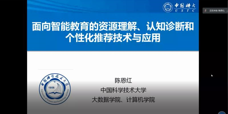 中国科学技术大学大数据学院执行院长,计算机学院副院长,教育部计算机类教指委委员,大数据分析及应用安徽省重点实验室主任、安徽省计算机学会理事长,国家杰出青年基金获得者,科技部重点领域创新团队负责人,中组部“万人计划”科技创新领军人才陈恩红教授报告题目为“面向智能教育的资源理解、认知诊断和个性化推荐技术与应用”,他指出智能教育系统快速发展,越来越多的学习者参与开展在线自主的学习活动,同时也积累了大量的教学与学习数据。如何利用这些数据,为学习者提供有效的学习服务是当前教育发展的重要任务。为此,发展智能教育技术,旨在利用大数据分析方法,为学习者推荐个性化的学习资源,定制学习策略,具有重要意义。然而,学习资源语义与知识耦合,学习者状态隐含多变,学习目标复杂多样等特点带来了学习资源理解难、学习者诊断难和学习策略设计难等关键挑战。报告将结合大数据分析技术和教育方面的领域知识,介绍学习资源深度表征、学习者认知诊断和个性化推荐等关键技术与应用,为智能教育发展提供数据驱动的解决方案。