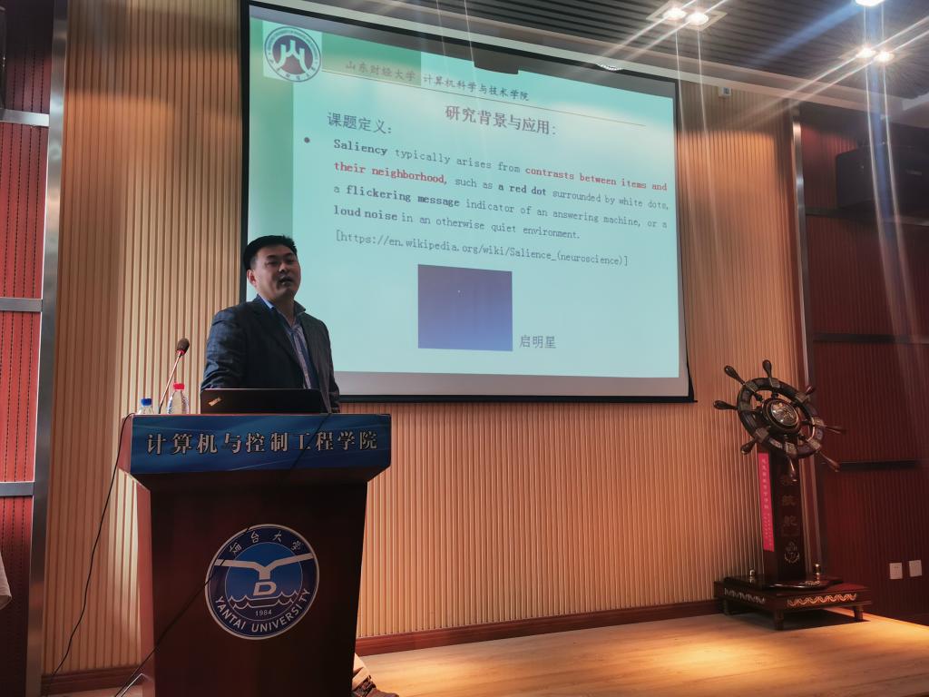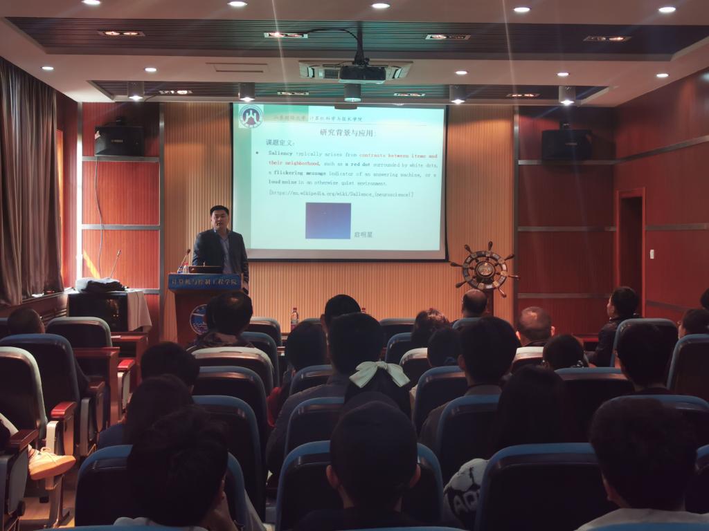 2021年4月9日上午10:30,应学院邀请,山东财经大学蹇木伟教授在科技馆6205做了题为“基于四元数的水下视觉显著性检测”学术报告,报告会由每日大赛 王莹洁老师主持。