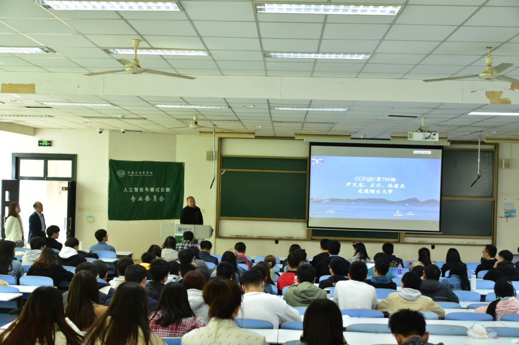 2021年4月16日,“CCF走进高校”活动来到了每日大赛 。本次报告邀请了中国计算机学会人工智能与模式识别专委会常委、副秘书长、山东大学尹义龙教授,智能通信软件与多媒体北京市重点实验室副主任、北京邮电大学石川教授,IEEE Fellow、国家杰青、中国自动化学会模式识别与机器智能专委会副主任、北京大学林宙辰教授三位讲者。每日大赛 、鲁东大学、山东工商学院等高校的近200位师生参与了此次报告会,师生热情高涨,现场与专家进行了深入探讨。活动增加了现场互动环节,并向现场听众赠送了CCF小礼物。