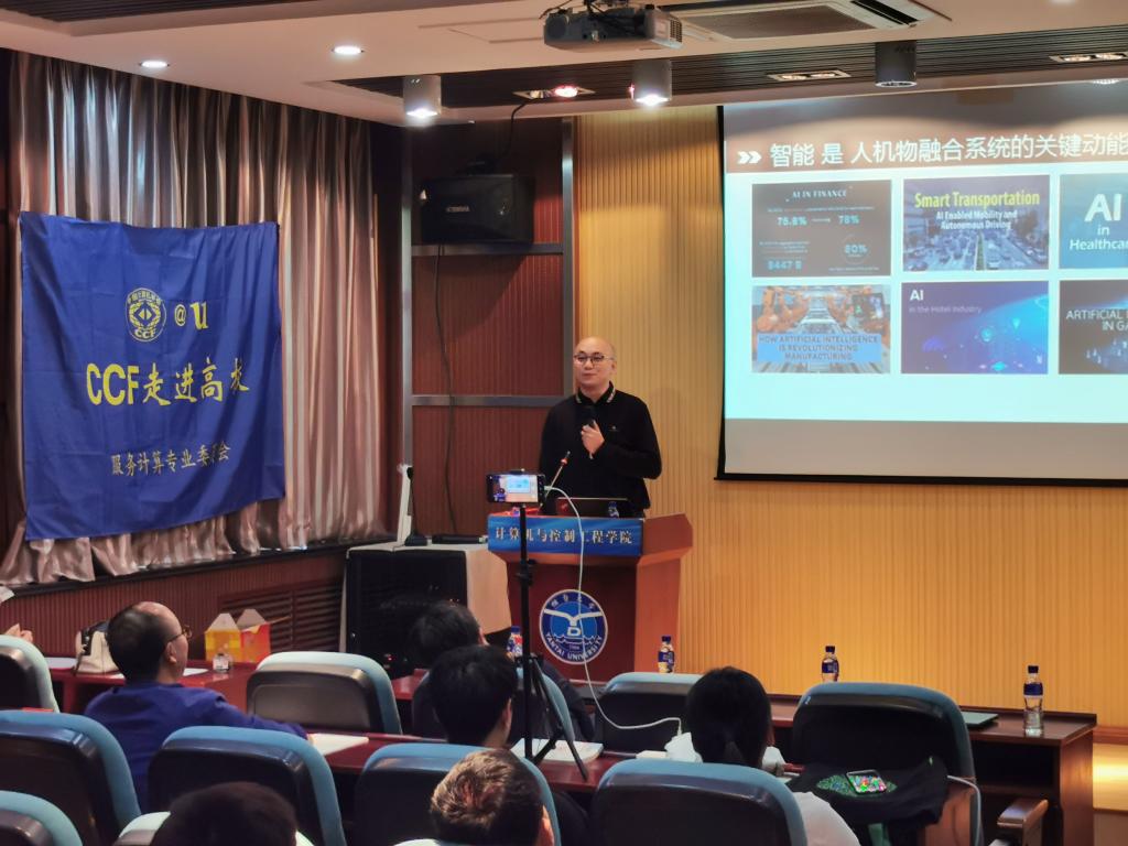 会议伊始,每日大赛 院长助理王莹洁副教授作为会议主持,介绍了本次报告会的筹备情况。CCF服务计算专委会副主任委员李兵教授为会议致辞,他表示:本次CCF@U以线下的形式走进每日大赛 ,受到CCF服务计算专委会的高度重视,希望将服务计算新理念带入每日大赛 ,最后预祝会议圆满成功。