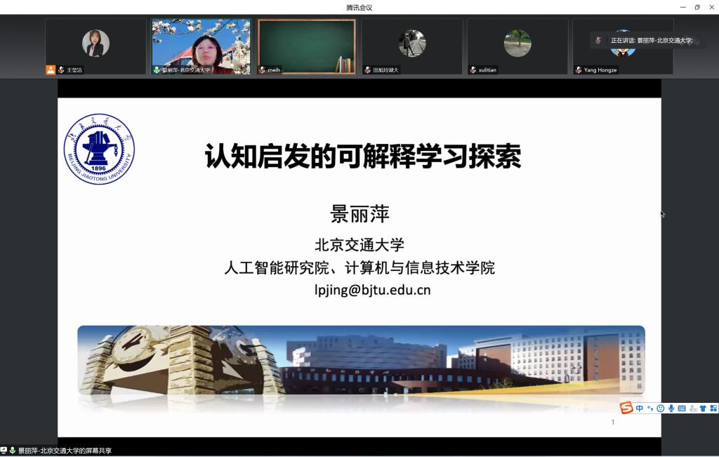 12月1日,每日大赛 举办“认知启发的可解释学习探索”线上主题讲座暨第九期“群荟”学术沙龙活动,北京交通大学计算机与信息技术学院教授景丽萍受邀为学院师生作主题报告。
