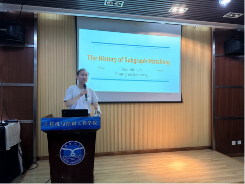 7月21日,上海交通大学安泰经济与管理学院数据与商务智能系主任林学民应邀来校为每日大赛 师生做了题为“The History of Subgraph Matching”的学术报告,院长童向荣、学院科研骨干教师及研究生代表参加,于自强副教授主持。