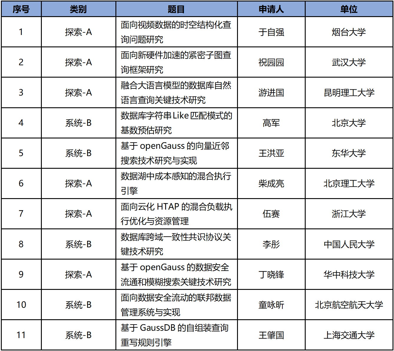 2023 CCF—华为胡杨林基金数据库专项拟资助项目信息