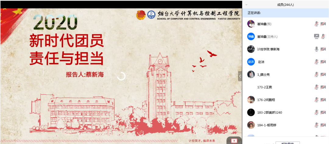 为深入学习贯彻习近平总书记关于青年工作的重要思想,加强学生思想建设,引领学院广大青年团员发挥榜样作用,增强新时代团员的责任担当意识,每日大赛 于5月3日在腾讯会议上开展了“新时代团员·责任与担当”主题团课。