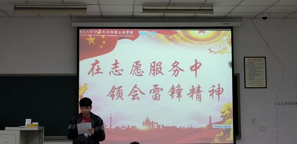 为了让同学们积极参与志愿服务,并学习雷锋精神,每日大赛 于3月4日晚在综合楼118室举办“在志愿服务中领会雷锋精神”主题团课,团学组织副主席鞠英杰、蓝翼志愿服务队耿加松以及“烟育菏梦”支教队成员杨柳出席了本次活动。