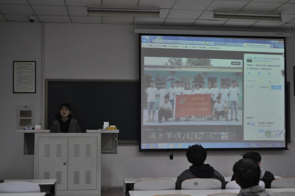 活动伊始,蓝翼志愿服务队耿加松向大家介绍了目前蓝翼青年志愿者协会工作重点与工作目标,向在场同学传达了积极投身公益事业的协会理念,并号召大家积极报名参与到公益活动中来。随后,杨柳向大家讲述了“烟育菏梦”支教队成员们在菏泽单县的支教经历,淳朴善良的农家、活泼可爱的孩子……杨柳绘声绘色的描述点燃了在场同学们的志愿热情,同时,她告诉大家支教过程中遇到的困难与挑战,并表示支教工作不仅是对自身能力的考验,更为社会中需要帮助的人提供了力所能及的帮助。团课最后,由于在场同学对公益活动还存在种种疑惑,耿加松针对同学们提出的问题进行了详细的解答,并向同学们传授了服务经验,至此本次会议圆满结束。