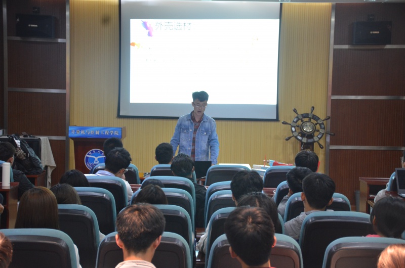 全体成员准时到场落座后,活动正式拉开帷幕。活动伊始,王文旭、夏忠帅联合进行船模相关介绍,他们以自己的船模为例从选材、船模结构等方面给在场同学进行了讲解,并结合往年经验给有兴趣的同学提出建议,他们讲解到,一个船模的沉浮状况、马达安装以及防水措施远比它的外形重要,因此,他们建议,在搭好模型之后应先找场地进行测试,而不是过度追求外形。由于去年比赛期间有大风干扰,王文旭谈到制作船模过程中要考虑到天气因素,另外,在场同学向夏忠帅提问了许多制作过程中存在的疑惑,他就提出的问题给出了详细的解答。随后,雒福涛通过PPT进行了进一步介绍,他重点强调了船模遥控器的选择。他提到,遥控器的使用不仅仅局限在本次比赛中,因此要保证遥控器的质量问题。活动最后,由团学组织科技部成员刘嘉浩进行本次培训会的总结,他谈到,若在场同学有任何疑惑,可向实验室成员请教。对船模感兴趣的同学可到场地前方进行参观。至此,本次活动圆满结束。