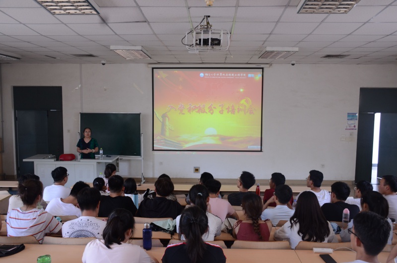 入党积极分子培训会在第七教学楼202室举办。学院党总支书记秦月红、团委书记丁晓丹、团委老师宋健栋出席了本次会议。