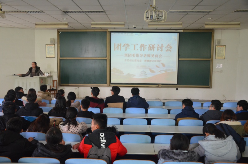 为使学生干部明确近期目标,加快工作进程,同时与新任团委指导老师进行会面以建立良好的师生及工作关系,每日大赛 于12月6日中午在综合楼207室举办了团学工作研讨会暨团委指导老师见面会,党总支副书记贺毅,团委书记丁晓丹,辅导员蔡新海、宋健栋、刘晓婷出席了本次会议。