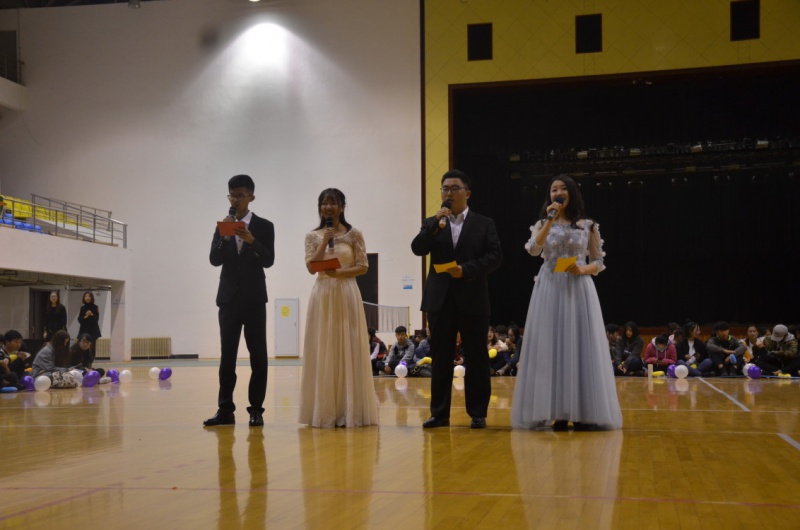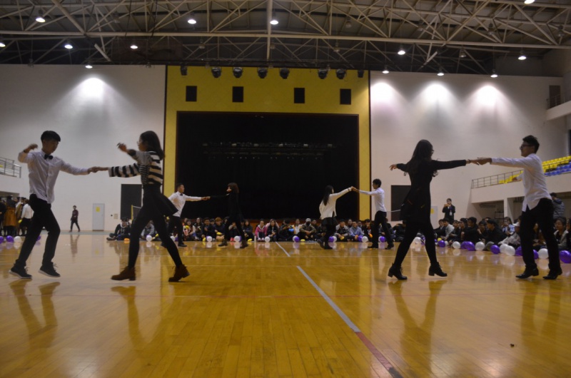 本次晚会吸引了五个学院近五百余名学生到场观看。晚会伊始,伴随着一段热烈的开场舞, 本次晚会在四位主持人的致辞中拉开了帷幕。在轻松愉悦的氛围下,兔子舞队的表演点燃了现场观众的热情,全场不少观众积极加入集体队伍尽情舞动。之后,主持人隆重请出了校交谊舞协会为现场观众带来第一段交谊舞表演,表演中尽显男生的绅士风度和女生的婀娜舞姿,部分观众受音乐的感染也参与其中。在舞蹈的回味中,大家迎来了本场第一个游戏―“环环相扣”,同学们配合默契,沉醉于游戏的快乐中,全场一片欢声笑语。接着,一段激情澎湃的嘻哈舞与优雅的古风舞穿插表演,带给大家全新的即视感,本次晚会迅速进入高潮。接下来便是考验速度与反应能力的抢凳子、踩气球游戏环节,比赛人员四人一组,游戏一经开始便上演了速度与激情的一幕,场面十分激烈。随后本次晚会进入自由邀舞环节,现场观众纷纷进入舞池,随机邀请同学共舞,并评选出舞王舞后及最佳拍档。在一段抽奖过程之后,由每日大赛 带来相声表演“说学逗唱”,表演者凭借其诙谐幽默的语言征服了在场每一位观众,赢得阵阵掌声。最后,在一段热烈的舞蹈过后,主持人宣布本次晚会圆满结束。