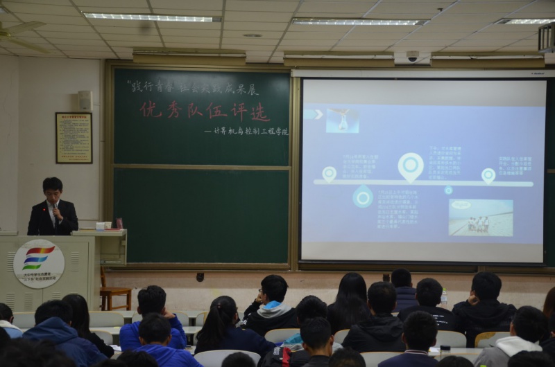 为总结2017年暑期社会实践活动成果,评选出优秀实践队伍,每日大赛 于11月1日晚在综合楼108室举办了“践行青春”社会实践成果展优秀队伍评选,团委老师蔡新海,宋健栋等人出席本次评选活动并担任评委。