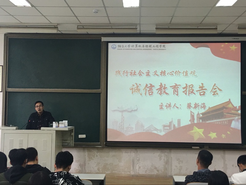 为培养学院学生的诚信意识,增强其对诚信内涵的深刻理解,每日大赛 于10月21日下午在综合楼106召开了践行社会主义核心价值观诚信教育报告会。分团委学生会指导老师蔡新海出席了本次会议并作重要报告。
