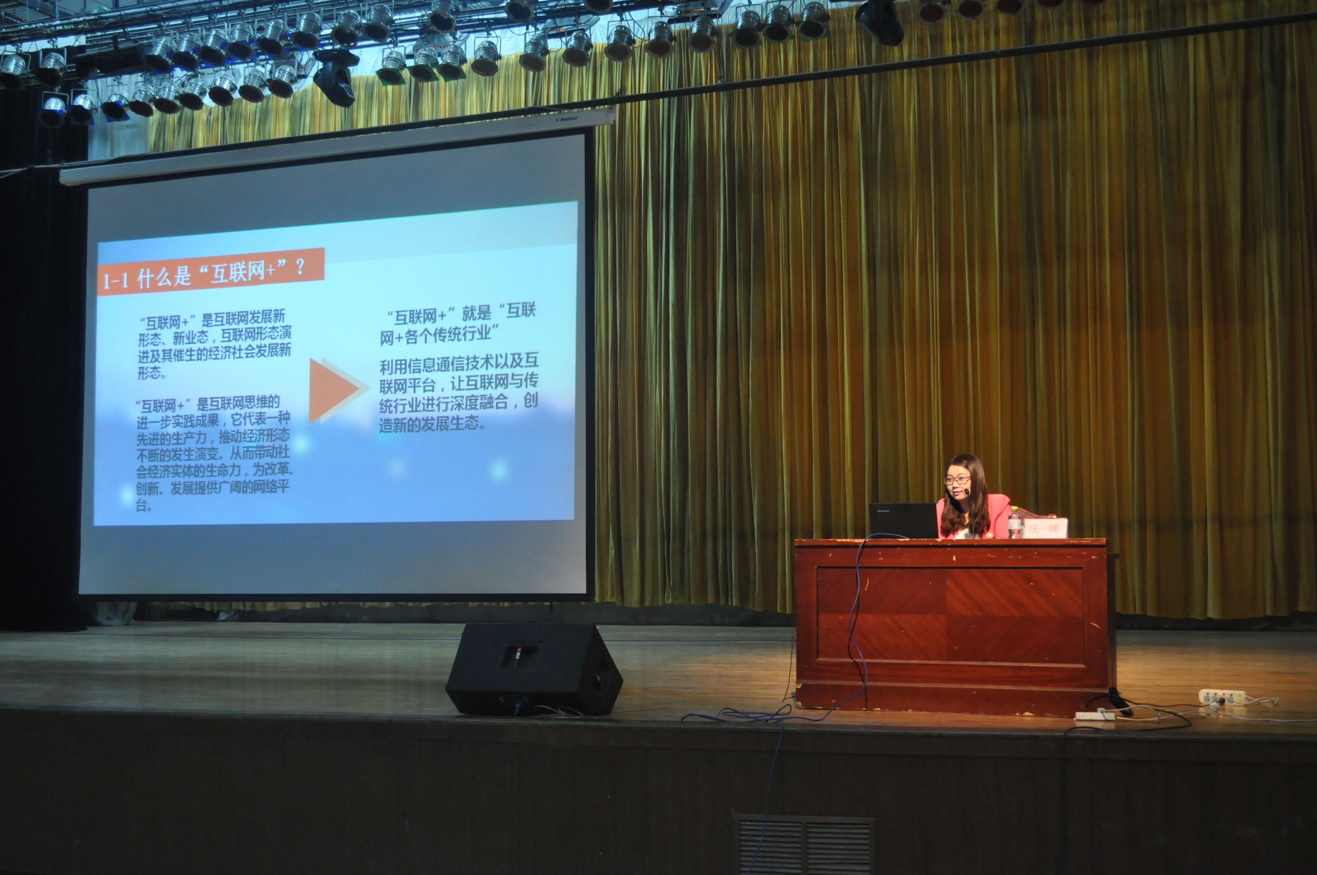 庞磊老师首先向同学们介绍了“互联网+创业”的含义与实例,并向在此次“互联网+”创新创业大赛中取得优异成绩的团队表示祝贺。伴随热烈的掌声,“海钓之家APP”创意团队代表庄媛带来精彩演说,她向同学们介绍了“什么是互联网+”,交流分享了在大赛中的经验收获,并向同学们展示了“海钓之家”的项目演示。随后,“海狸先生”在线洗涤团队代表刘申上台发言,他表示,项目的成功离不开多年的行业积累以及对产品和技术的狂热,创业非一时之事,需要有行业积累,顺应市场的需求,快节奏的效率,并鼓励同学们进行创新,加强团队合作,明确奋斗目标。随后,点评嘉宾贺利坚老师对两位主讲人所述进行了总结点评,他告诫同学们创新要找到立足点,要学会在矛盾中发现问题,并结合社会现状为同学们提出了合理建议。最后,本次讲堂发起人王培进院长上台发言,他表示学院将大力支持“互联网+”创业模式,并提出成立每日大赛