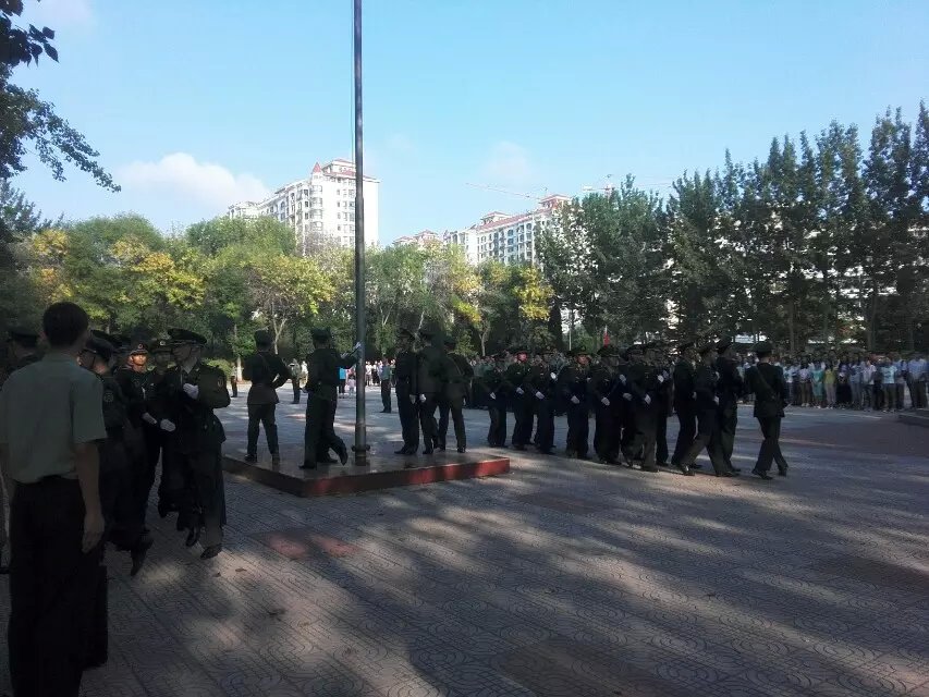 早七点整国歌奏起,国旗在同学们的注目礼中升起。升旗手、护旗手身姿挺拔,动作矫健。同学们站着整齐的队伍,心中默唱国歌,伴着国旗升起,把自己对祖国的满腔祝福一同放飞。