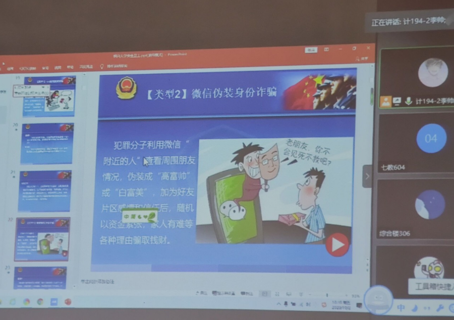 为进一步加强校园安全管理,增强新生安全意识,建设和谐的校园环境,每日大赛 于10月2日利用“现场+腾讯会议”双重模式开展了大学生安全教育讲座,每日大赛 保卫处治安科科长张杰担任讲解人。