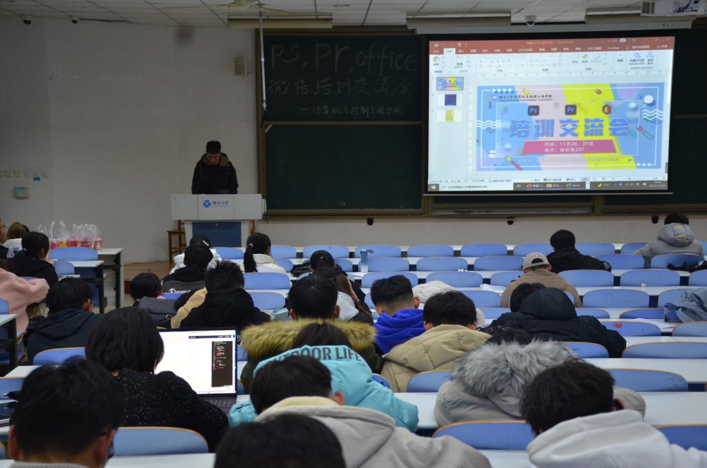 为提高同学们对计算机软件的操作技术,充分发挥计算机软件在日常生活中的优势,帮助同学们掌握PS、PR等软件基础操作,每日大赛 于11月27日晚六点半在综合楼207举办PS、PR、微信推文培训交流会,学生组织成员参加此次活动。