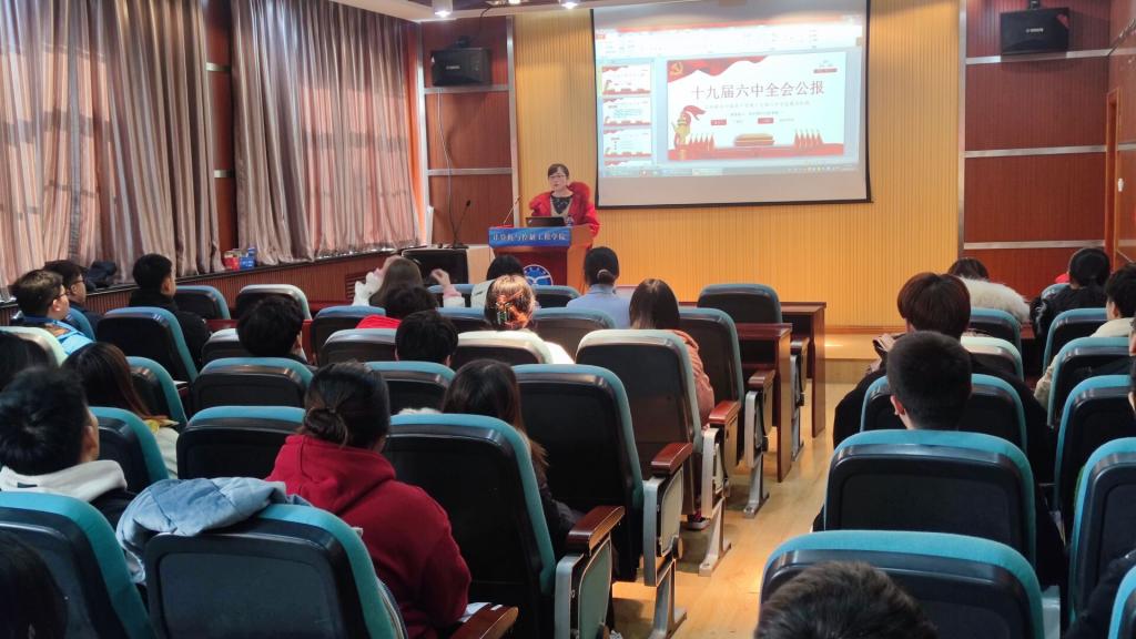 首先,丁晓丹对新一批发展对象表示欢迎,并表示希望大家进一步端正入党动机,提高个人思想觉悟,争取早日入党。随后,丁晓丹就党的十九届六中全会公报的内容和精神进行宣讲。她从党的十九届六中全会概况、党的十九届六中全会公报解读、中国共产党百年奋斗的历史意义和历史经验等方面进行了宣讲。全会审议通过的《决议》通篇融汇了百年来中国共产党践行为中国人民谋幸福、为中华民族谋复兴的初心使命所进行的奋斗、牺牲和创造,深刻揭示了“过去我们为什么能够成功、未来我们怎样才能继续成功”。党课结束后,各位发展对象纷纷表示,通过这次党课进一步明白了党的十九届六中全会的重要性及所代表的意义。大家普遍认为,作为新时代的中国青年,要深入学习贯彻党的十九届六中全会精神,把全会精神传递到更多青年中去,为实现第二个百年奋斗目标、实现中华民族伟大复兴的中国梦贡献青年智慧和青春力量。最后,丁晓丹作总结发言。她指出,当代青年大学生应坚定初心、志存高远,把个人理想和国家发展紧密结合起来,书写属于自己的精彩篇章。至此,本次宣讲会圆满结束。