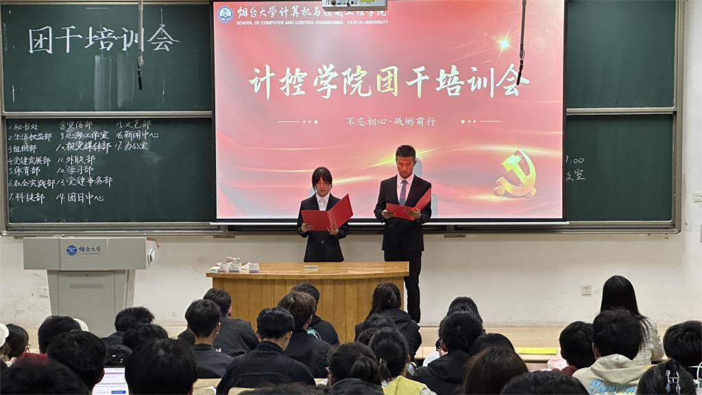 为进一步加强对团干部的教育培养,提升团干部政治理论与工作能力水平,10月16日,计算与控制工程学院在第五教学楼举办2023级团干培训会,2023级辅导员胡新慧、学生会主席李明阳、院学生会干部代表及2023级全体团支部干部参加。