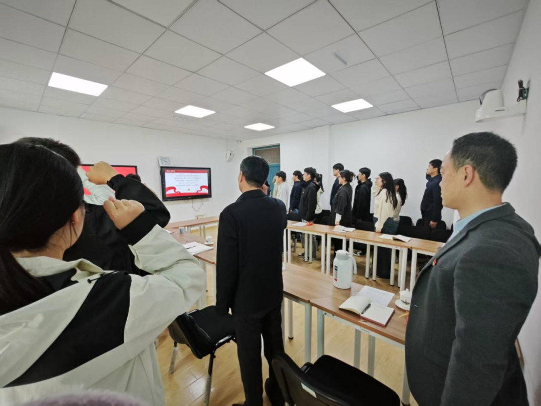 在庄严的党旗下,全体党员重温入党誓词,誓言铿锵,初心如磐。